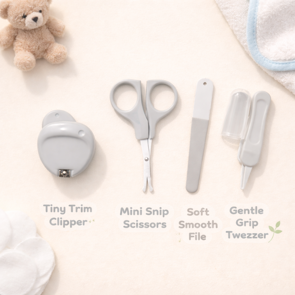 Each tool is thoughtfully crafted for newborns and infants, featuring smooth edges and ergonomic designs to ensure maximum safety and comfort. The nail clipper provides precise trimming, while the rounded-tip scissors allow safe cutting without the risk of injury. The soft nail file gently smooths rough edges, and the tweezers offer a secure grip for delicate handling.